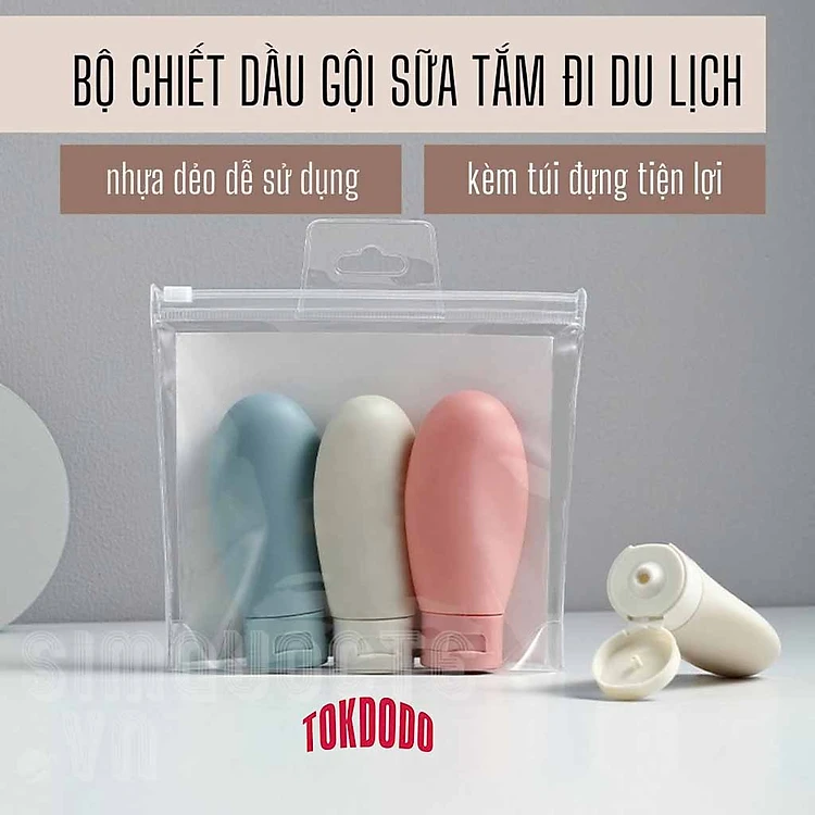 Set 3 Lọ chiết mỹ phẩm, dầu gội du lịch siêu tiện lợi dung tích 60ml kèm túi zip