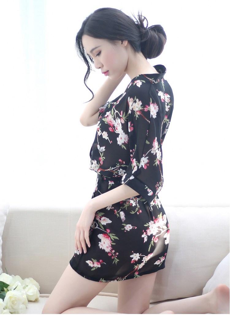 Sét 3 món áo choàng ngủ voan hoa kimono bền đẹp cao cấp