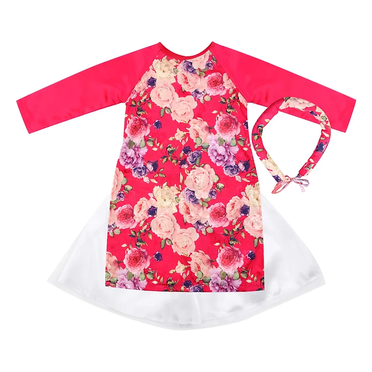 - Kiểu dáng áo dài cách tân vừa truyền thống vừa hiện đại với phần thân áo được may từ vải gấm phối tay phi lụa mềm mại, thấm hút mồ hôi tốt, chất liệu này không kích ứng da bé nên tuyệt đối an toàn. Ngoài ra, dễ giặt sạch và khô nhanh tiết kiệm thời gian cho mẹ.