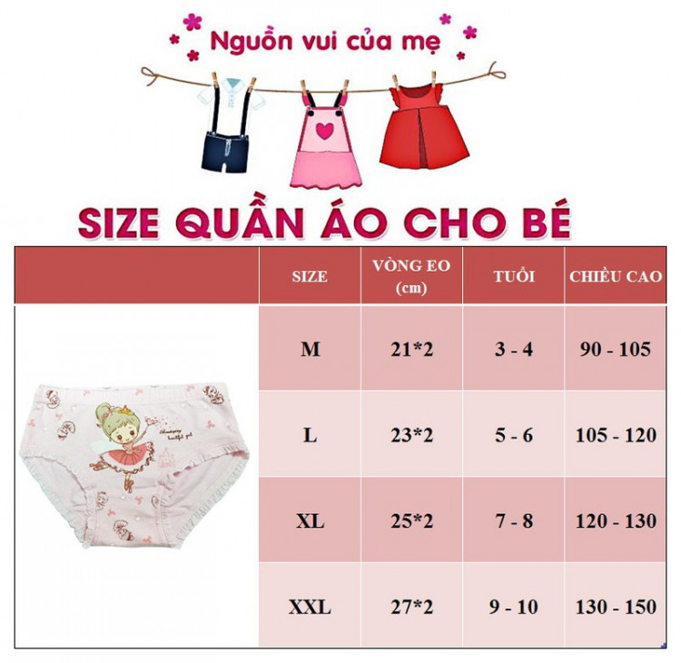 3.Chọn lựa kích cỡ quần lót cho bé gái thật kĩ càng, không nên cho bé gái mặc quần bó chật sẽ gây sự khó chịu và không thoải mái trong vận động.