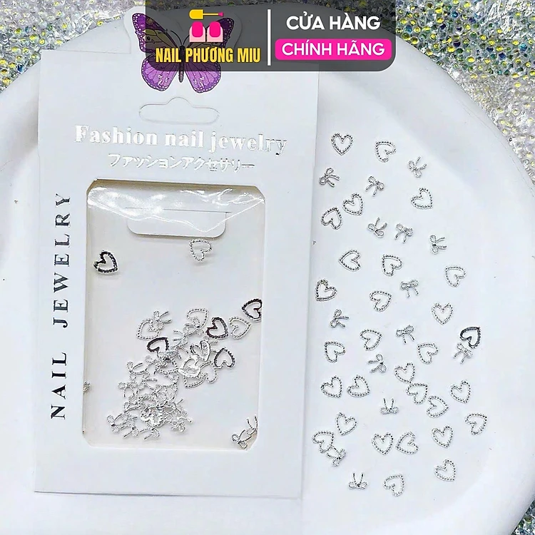 Set 30 Charm Nơ Tim Hàn Quốc Kim Loại Mix Làm Nail Siêu Xinh, Trang Trí Móng Sang Trọng Nữ Women