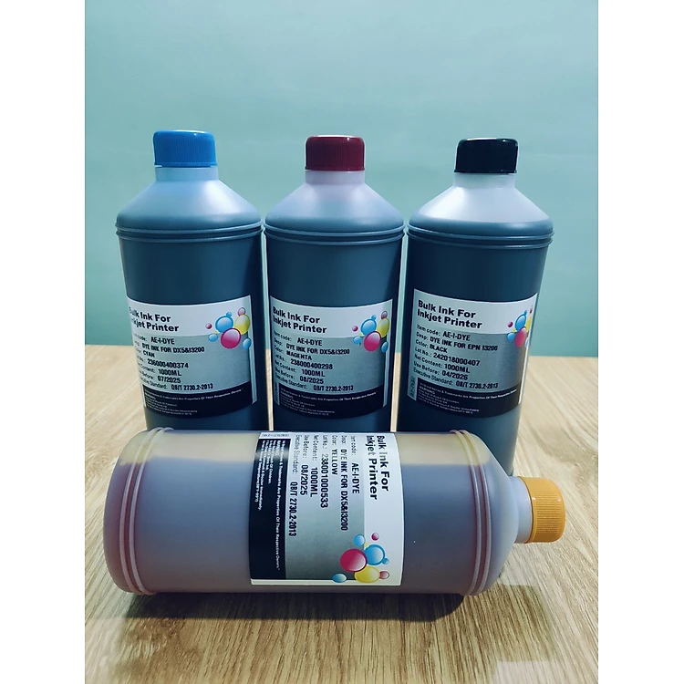 Set 4 chai Mực nước dye ink ( 1 lít/ chai) màu xanh tương thích Epson Dx5 I3200, hàng nhập khẩu.