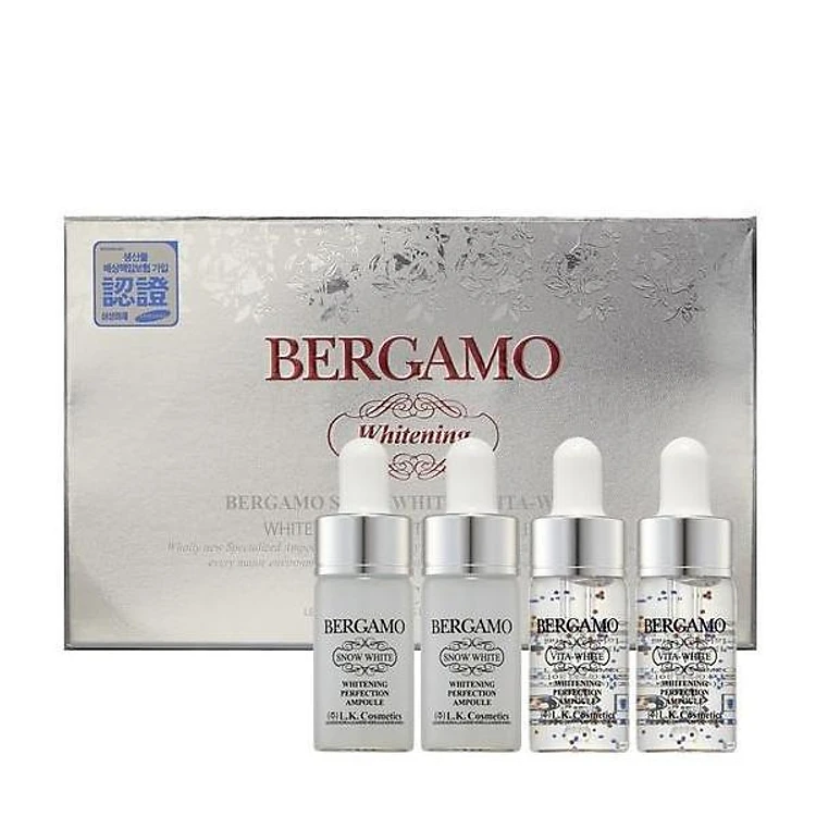 - Serum Bergamo Snow White Whitening Perfection với một công thức mới độc đáo gồm tinh chất collagen, nước tuyết, axitamin và chiết xuất nhân sâm sẽ cung cấp dưỡng chất giúp làn da bạn ngày càng trắng sáng lên trông thấy.