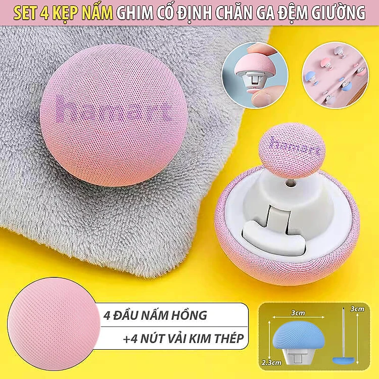 SET 4 Kẹp Cố Định Ga Giường Vỏ Chăn Gối Đệm Vải Cotton Đầu Nấm Kim Thép Khoá Ghim Chống Trượt Nệm