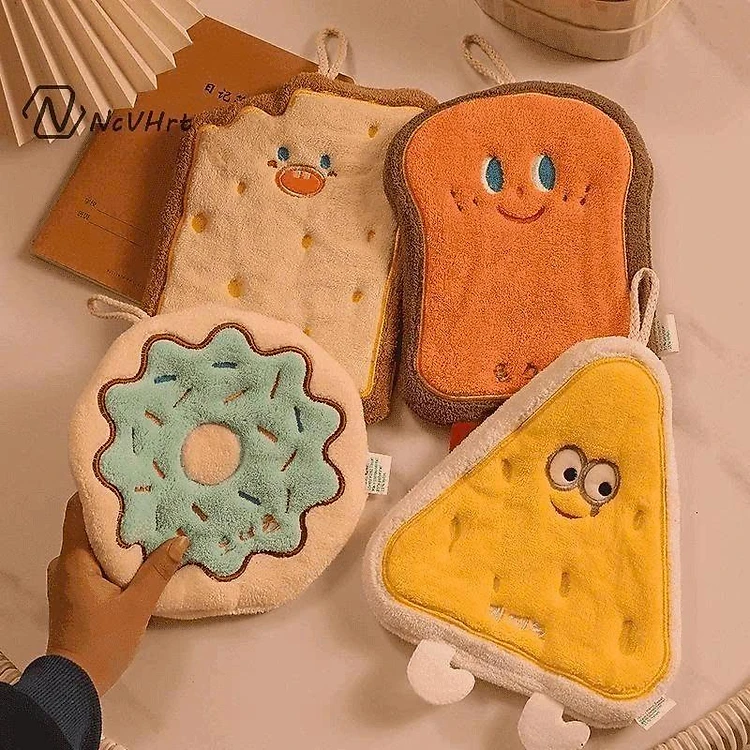 Set 4 Khăn Lau Tay Thấm Hút Tốt Hoạ Tiết Bánh Mỳ Phô Mai Cute- Chiếc Khăn Lau Tay Mềm Mịn Thấm Hút
