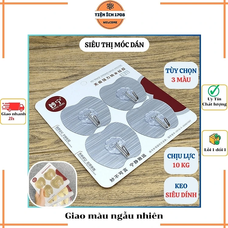 Set 4 móc dán tường NHÔM hình quả táo siêu dính, chịu lực tốt - giao màu ngẫu nhiên