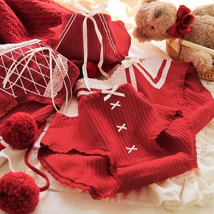 SET 4 QUẦN LÓT ĐỎ PHONG CÁCH NHẬT BẢN TINH KHIẾT NGỌT NGÀO THỜI TRANG TỪ 35-70KG DÀNH CHO NỮ