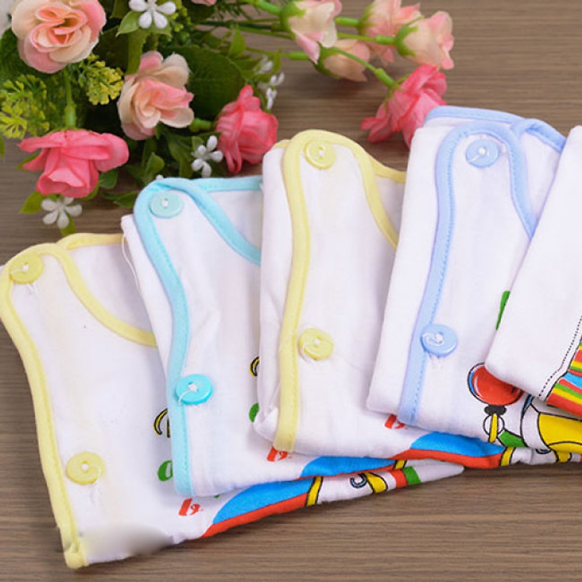 + Áo, khăn và tã: màu trắng viền màu đa dạng