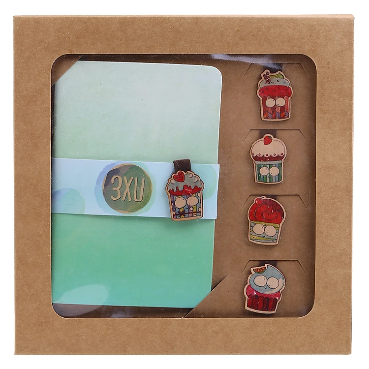 • Set 5 Bookmark Gỗ Nam Châm Cupcake bao gồm: 5 bookmark độc đáo kèm 1 sổ ruột trơn cá tính, khổ 10 x 14.7 cm, 32 trang giúp bạn vừa đánh dấu dễ dàng vừa ghi chú nhanh chóng.