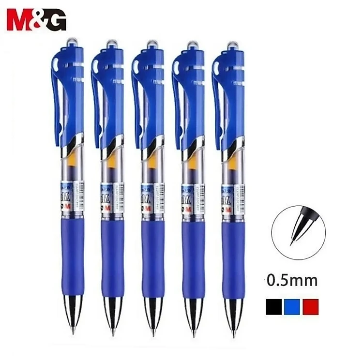 Set 5 bút ký gel nước xoay 360 độ M&G K35 ngòi 0.5mm I Ruột G5 thay thế