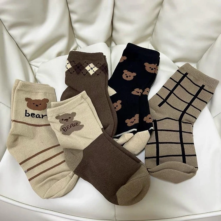 Sét 5 đôi tất cao cổ chất liệu cotton cho bé trai,bé gái từ 0=>10 tuổi họa tiết hình gấu phong cách hàn quốc