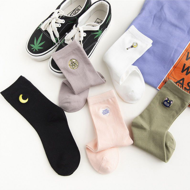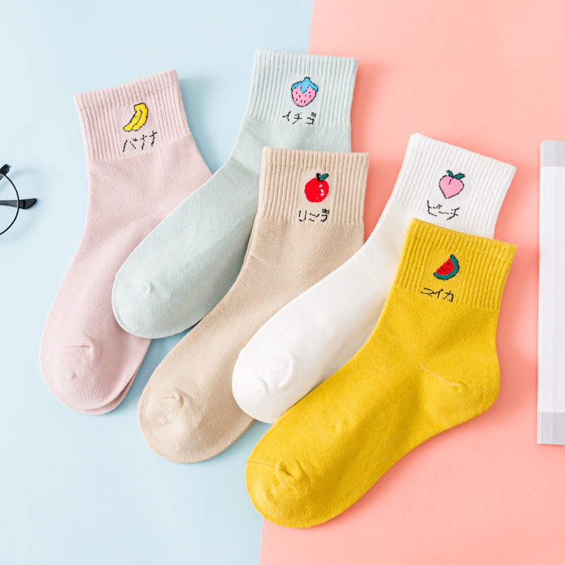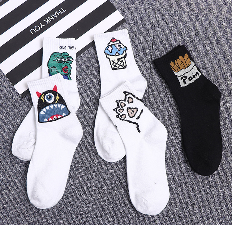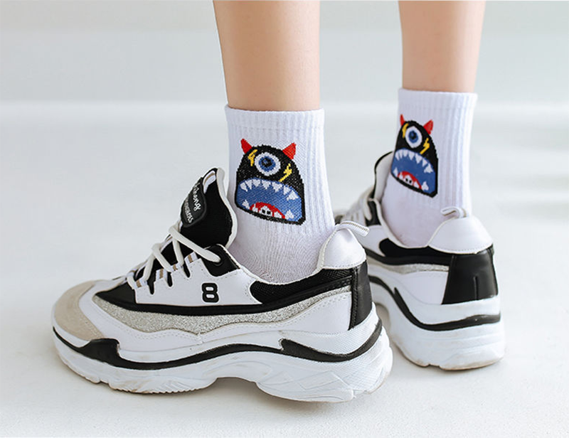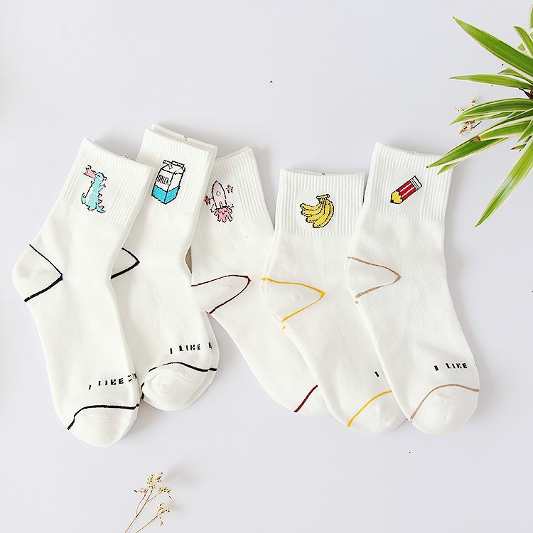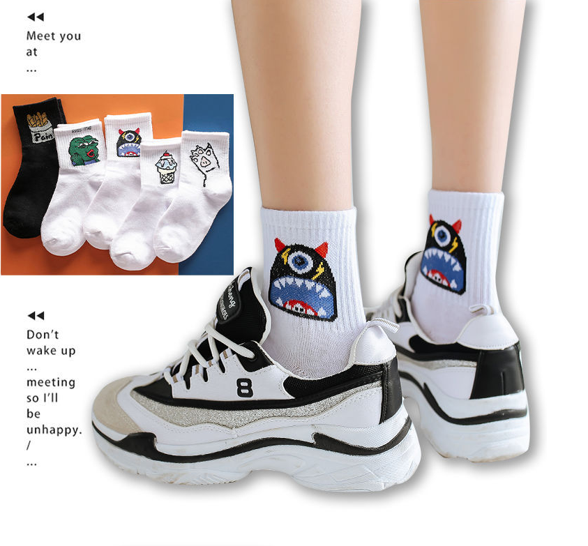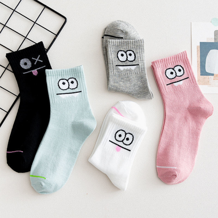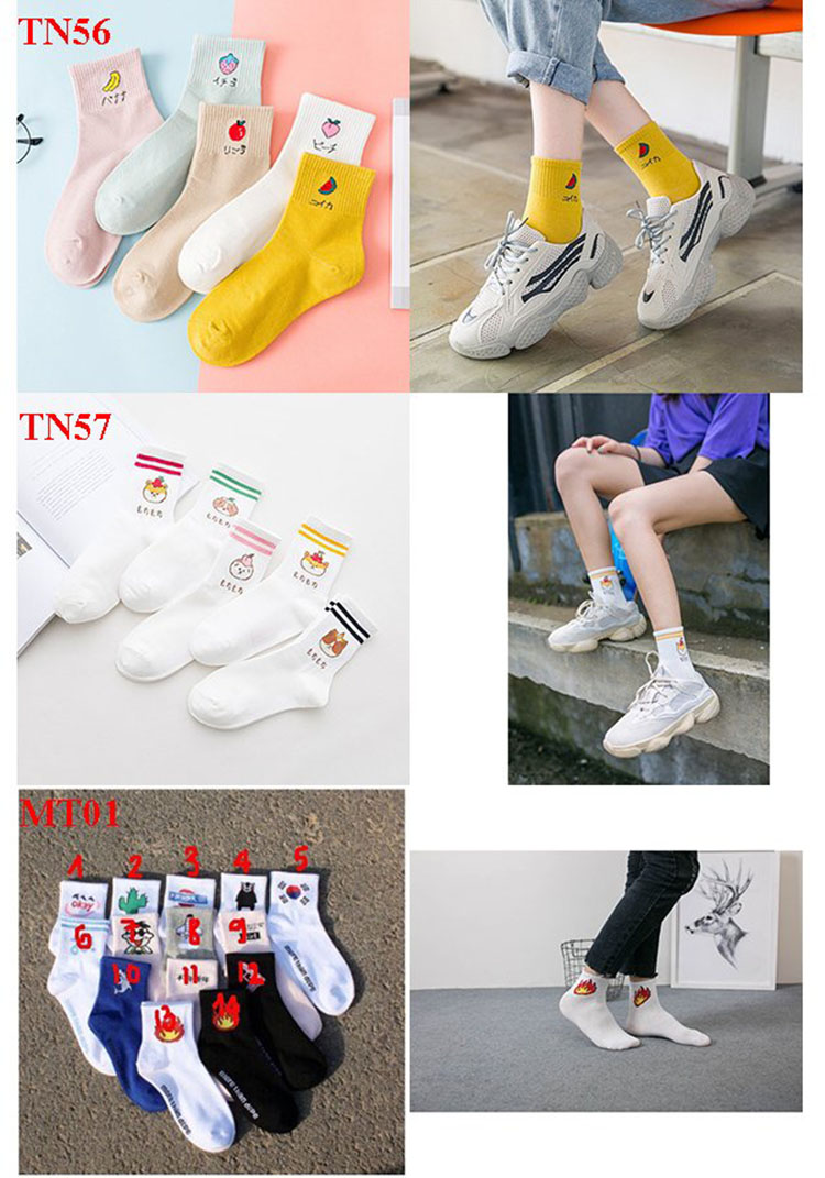 Set 5 Đôi Tất Nam Nữ Cotton Form Cao Phối Hoạt Hình Đa Sắc Màu Năng Động