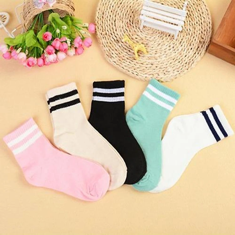 Set 5 Đôi Tất Nữ Cao Cổ Viền 2 Kẻ