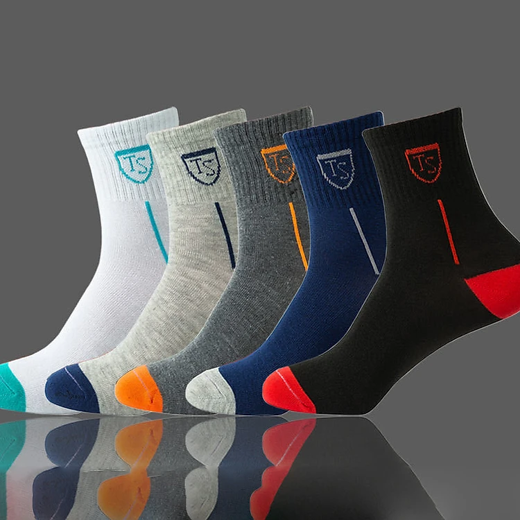 Set 5 Đôi Vớ Thể Thao Dài Trung Bình Màu Sắc Tương Phản Thoáng Khí Thời Trang Thu Đông Cho Nam