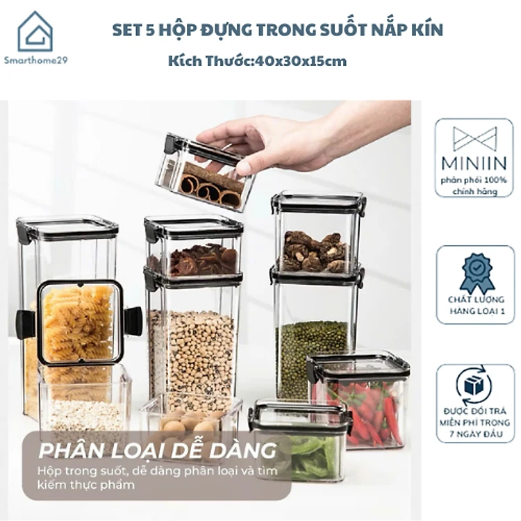 Set 5 Hộp Nhựa Đựng Ngũ Cốc H55, Bánh Kẹo, Thực Phẩm Khô - Hộp Đựng Trong Suốt Nắp Kín Chống Ẩm Cao Cấp - HÀNG CHÍNH HÃNG MINIIN