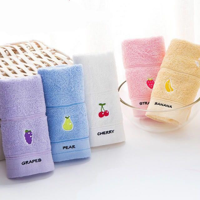 Set 5 khăn mặt cotton hoa quả mềm mịn, màu sắc dịu mắt và họa tiết xinh xắn.
