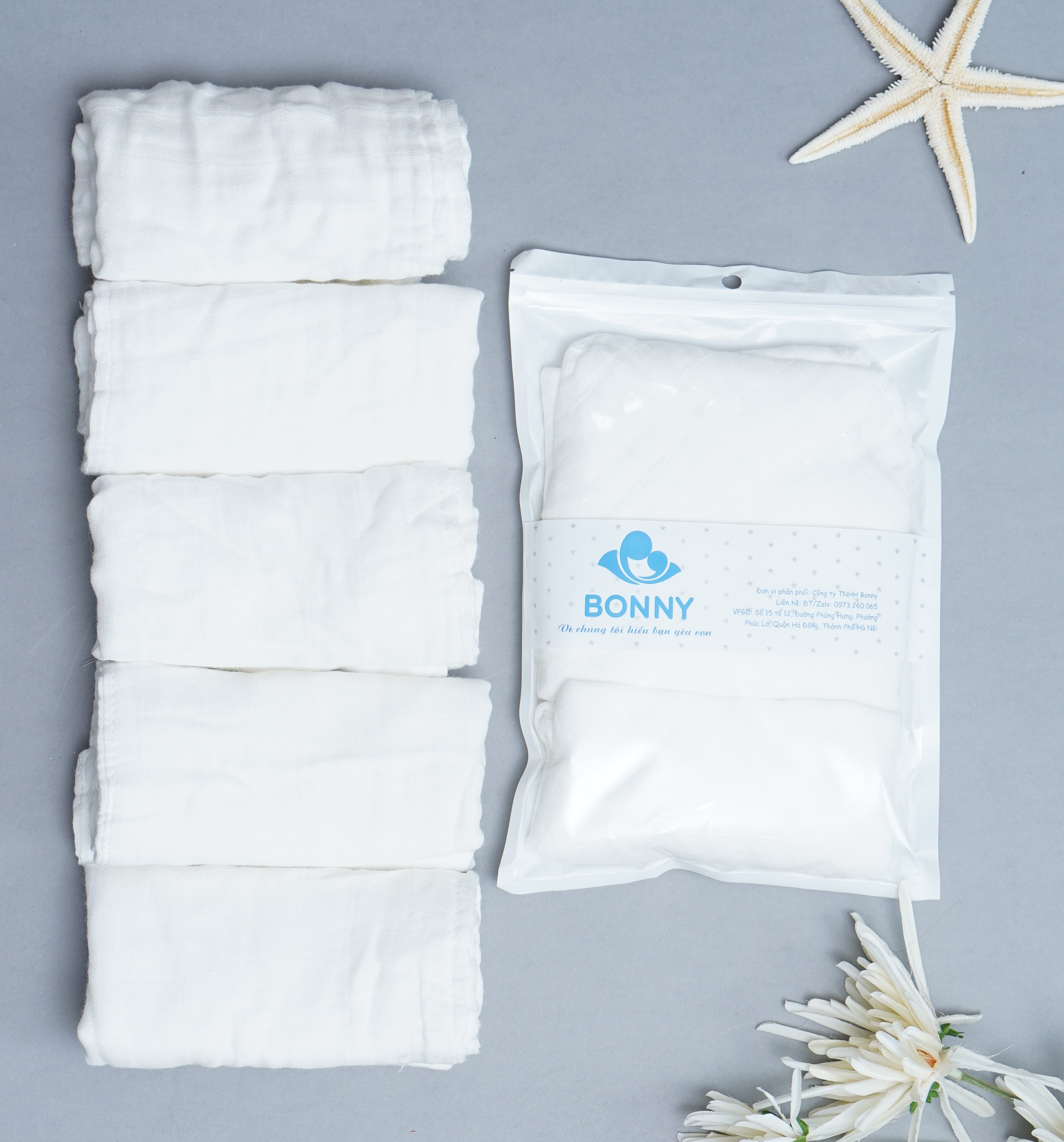 Set 5 Khăn Rửa Mặt 4 Lớp Sợi Tre Lụa Mềm, Thấm Hút Tốt, Kháng Khuẩn 100% Thương Hiệu Bonny