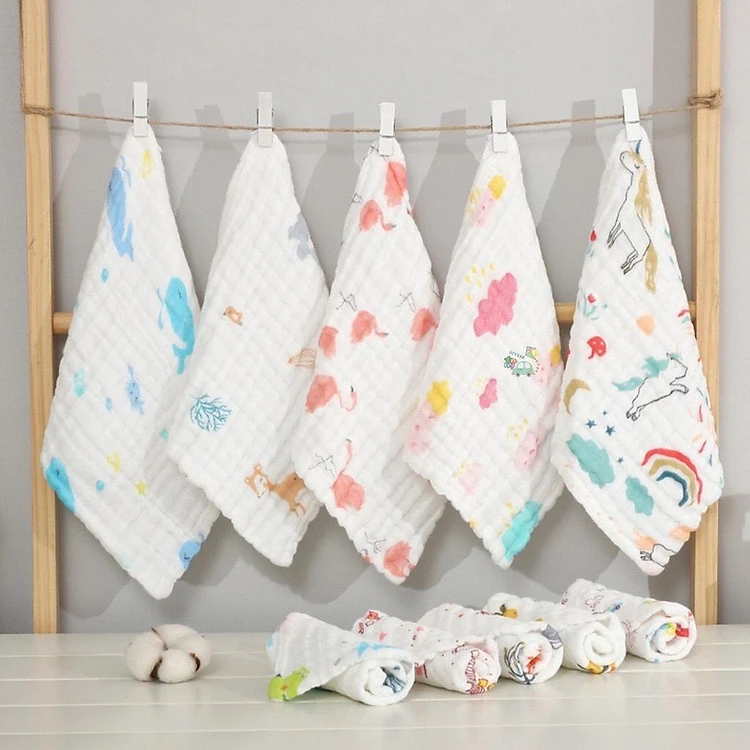 Set 5 khăn sữa 6 lớp họa tiết cotton 100% túi zip cao cấp Manny