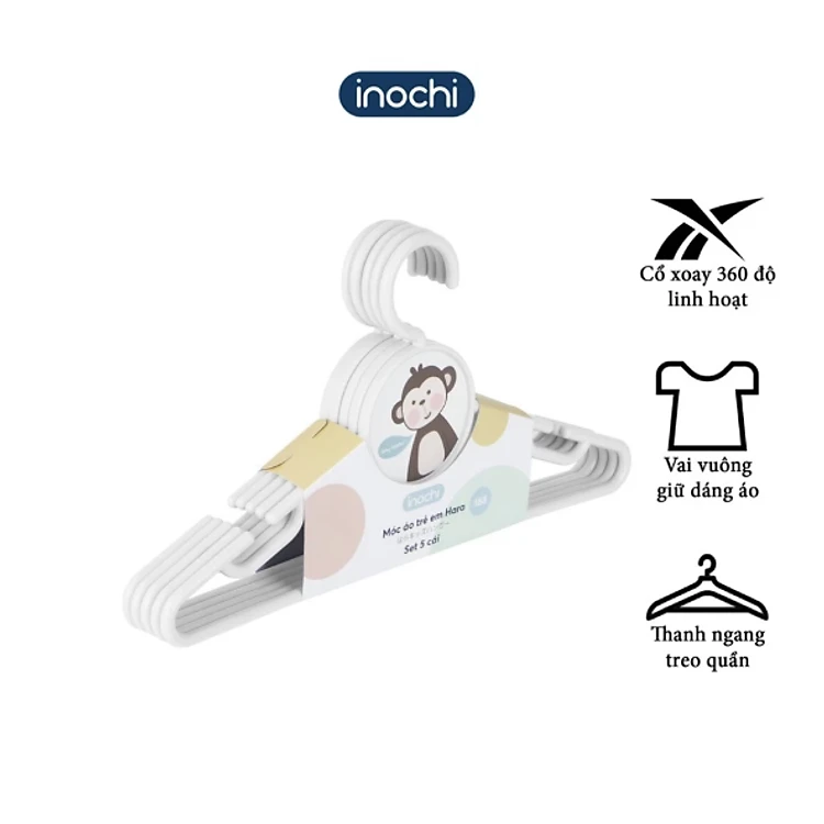 Set 5 Móc áo cho trẻ em Inochi - Hara 188 màu Trắng ngọc/Hồng nhạt/Xanh nhạt