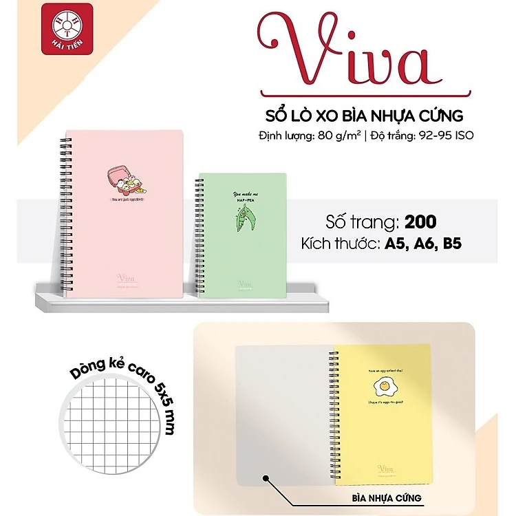 Set 5 quyển sổ lò xo caro bìa nhựa VIVA làm bujo, luyện chữ Calligraphy Hải Tiến 6539 / 6522 / 6546