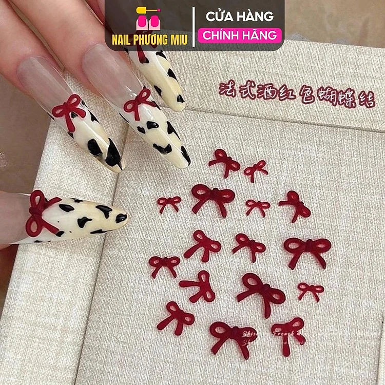 Set 50 Chiếc Nơ Đỏ 3D Mix Size Làm Nail Nữ Tính, Charm Nơ Đỏ Bằng Nhựa Gắn Móng Tay Nghệ Thuật Trẻ Trung Women