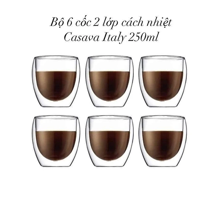 Set 6 cốc PODIUM 2 lớp cách nhiệt Casava Italy 250ml Hàng chính hãng