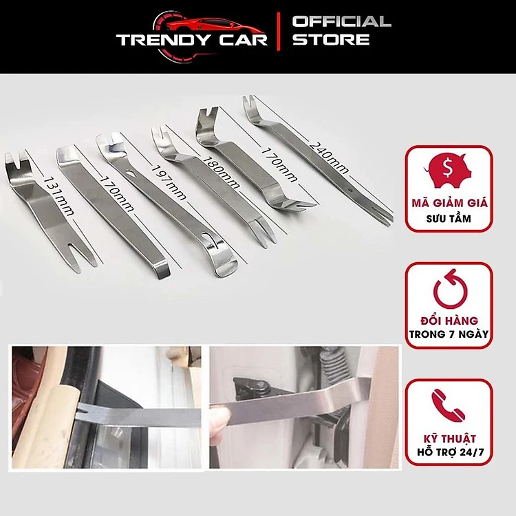 Set 6 công cụ bằng kim loại tháo gỡ đồ nội thất ô tô, táp lô, tháo cần số, tháo vô lăng xe hơi xịn