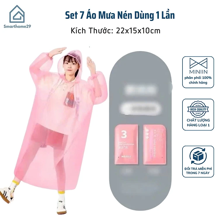 Set 7 Áo Mưa Nén Dùng 1 Lần Cho Bé & Người Lớn – Mỏng Nhẹ, Giao Màu Ngẫu Nhiên - HÀNG CHÍNH HÃNG MINIIN