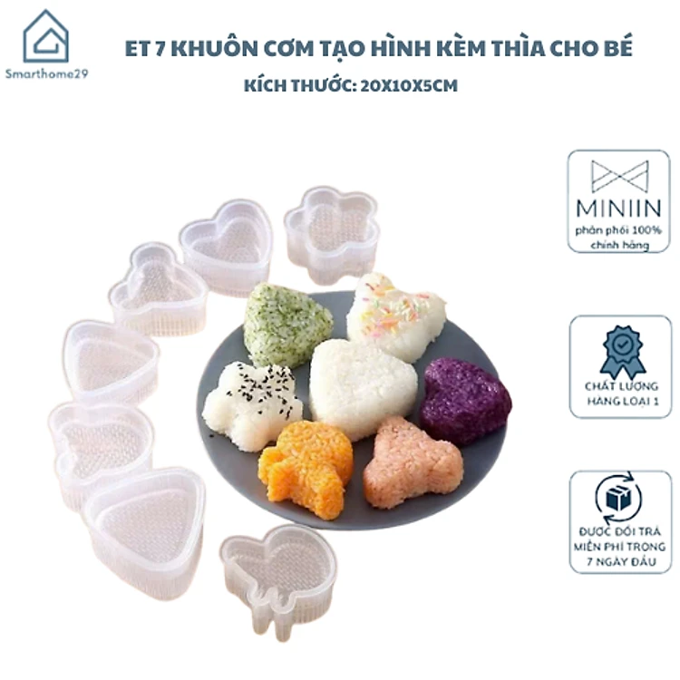 Bộ 7 Khuôn Làm Cơm, Ép Trứng Bento, Làm Bánh Tạo Hình Ngộ Nghĩnh Kích Thích Cho Bé Ăn-Chất Lượng An Toàn- Tặng Kèm Thìa Cơm- Chính Hãng MINIIN