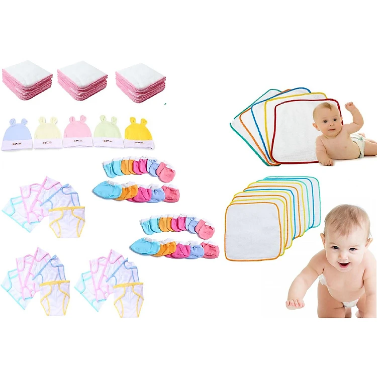 Set 70 Món Đồ Dùng Cho Bé Sơ Sinh(15 tã + 15 khăn + 10 cặp bao tay + 10 cặp bao chân + 5 nón + 15 tã lót )_y hình