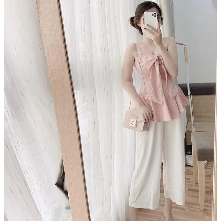 SET ÁO 2S NƠ HỒNG MIX QUẦN SUÔNG TRẮNG. D0007