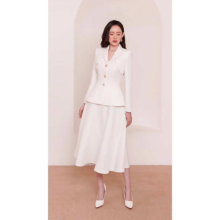 Set áo blazer & chân váy xòe Fiato thiết kế cao cấp WHITE CHIC