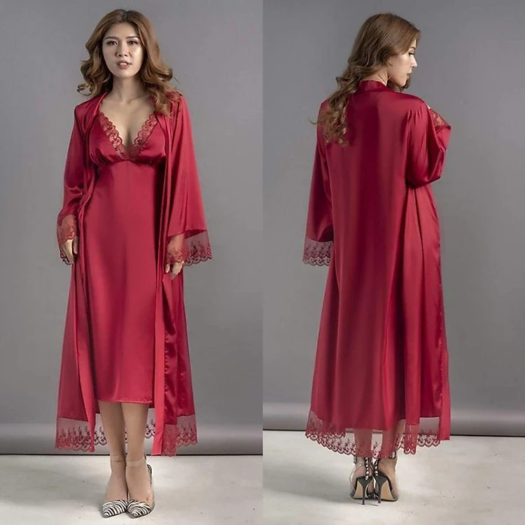 Thiết kế áo choàng ngủ kèm váy ngủ lụa hai dây HATU SLEEPWEAR