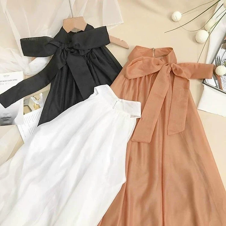 SET ÁO CỔ YẾM VOAN THẮT NƠ CỔ + QUẦN SUÔNG