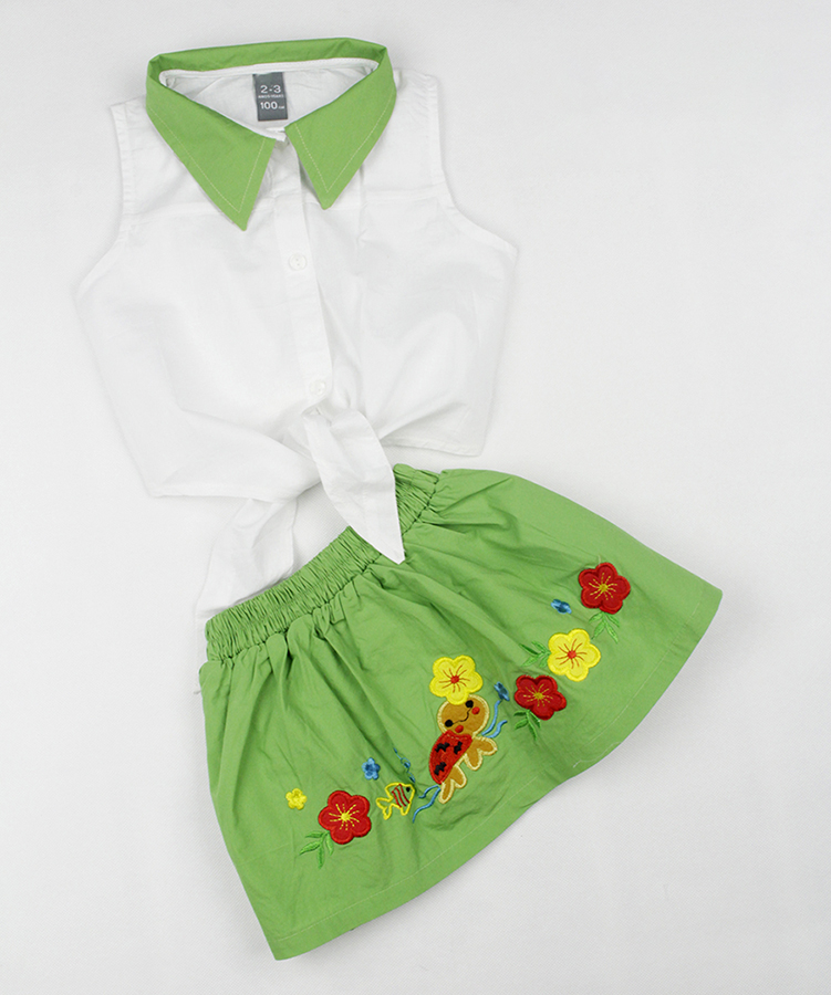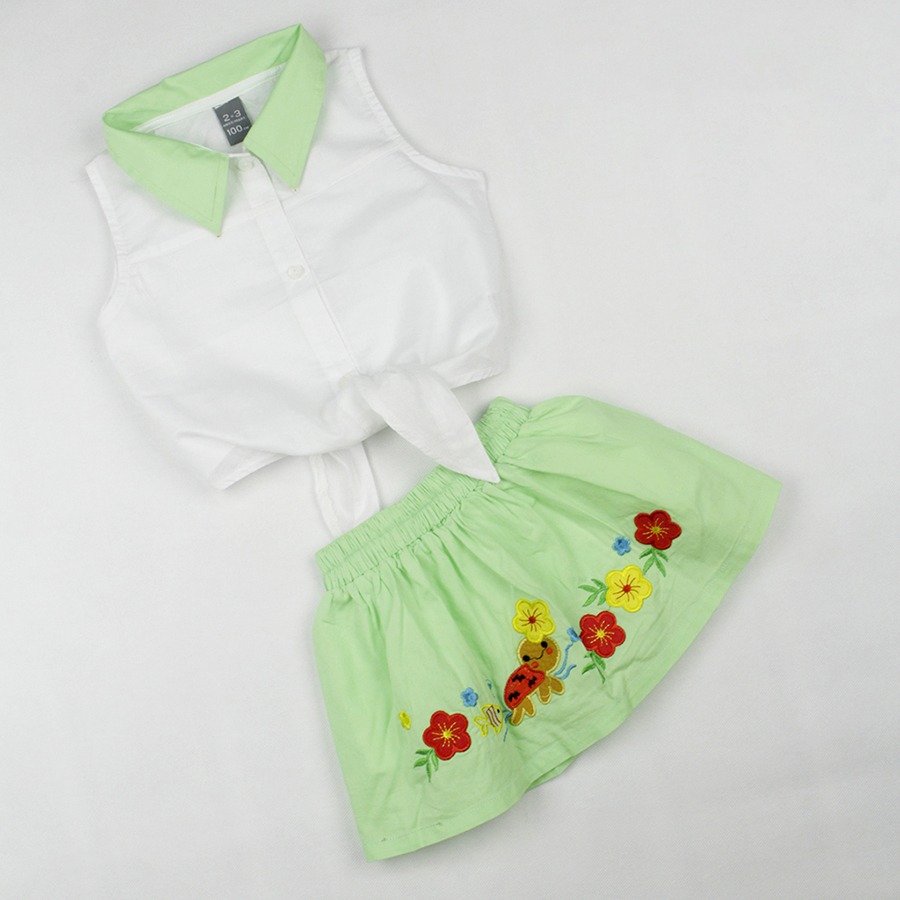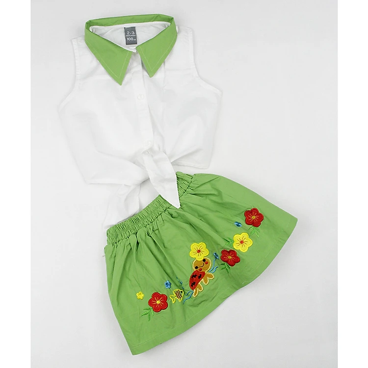 - Set áo cộc tay cột nơ và váy xoè thêu hoa cho bé gái 0.5-6 tuổi được may từ vải thun nhập 100% cotton 4c.