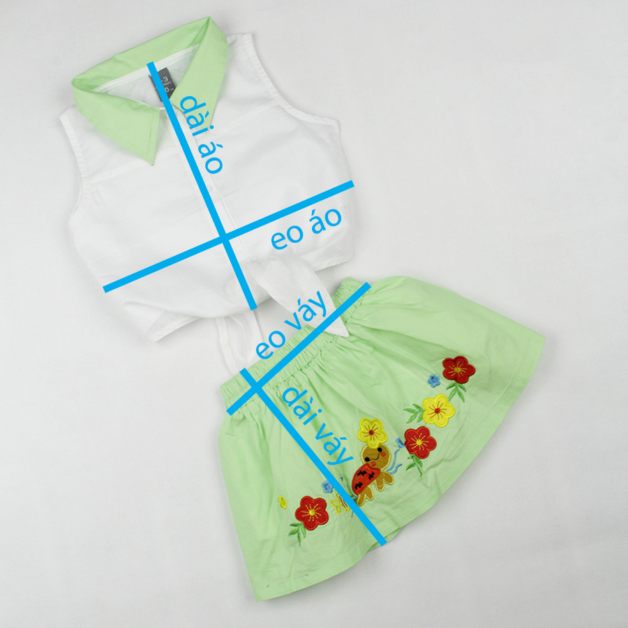 | Size 1-2 : Dài áo : 25 cm Eo áo : 28 cm Dài váy : 20 cm Eo váy : 17 cm | Size 2-3 : Dài áo : 26 cm Eo áo : 30 cm Dài váy : 21 cm Eo váy : 18 cm | Size 3-4 : Dài áo : 27 cm Eo áo : 32 cm Dài váy : 22 cm Eo váy : 19 cm | Size 4-5 : Dài áo : 28 cm Eo áo : 34 cm Dài váy : 23 cm Eo váy : 20 cm |