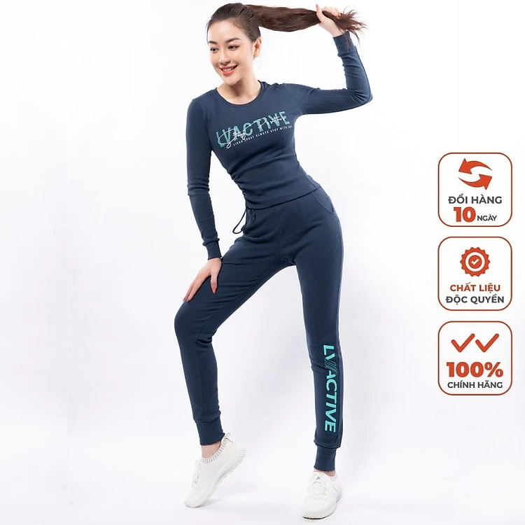 Set Áo Croptop Dài Tay & Quần Jogger LV Positive Len Tăm Livan Sport Chính Hãng
