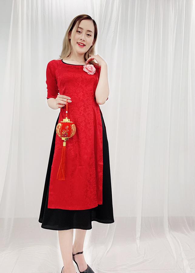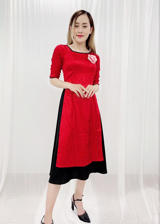 - Áo dài được thiết kế ngang gối rất dễ mặc và tôn dáng, những chị có phần eo hơi tròn 1 chút thì khỏi lo vì áo dài này thiết kế che bụng rất tinh tế,