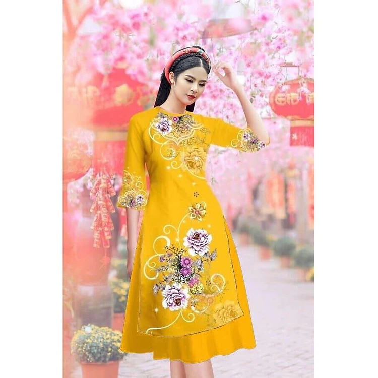 SET ÁO DÀI CÁCH TÂN HỌA TIẾT CÔNG CHÚA
