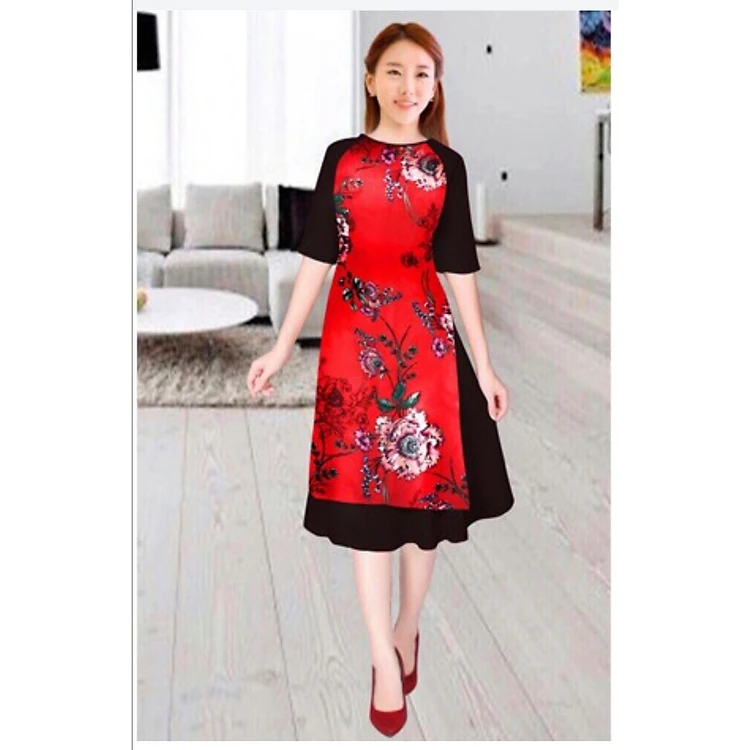 SÉT ÁO DÀI CÁCH TÂN KÈM CHÂN VẤY HỌA TIẾT HOA - NT2019NT (CÓ SIZE LỚN)