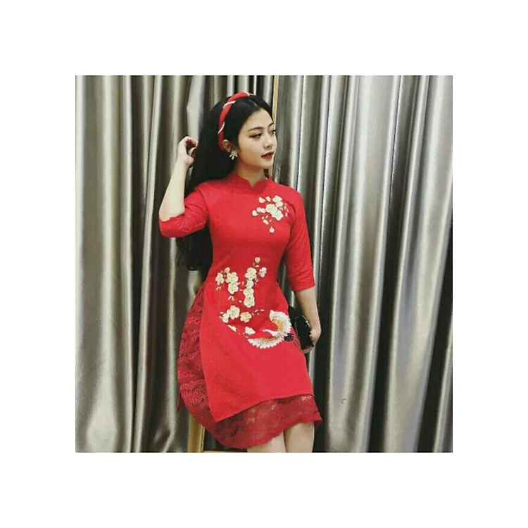 SET ÁO DÀI CÁCH TÂN KÈM CHÂN VÁY IN HẠC SIÊU CAO CẤP