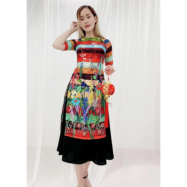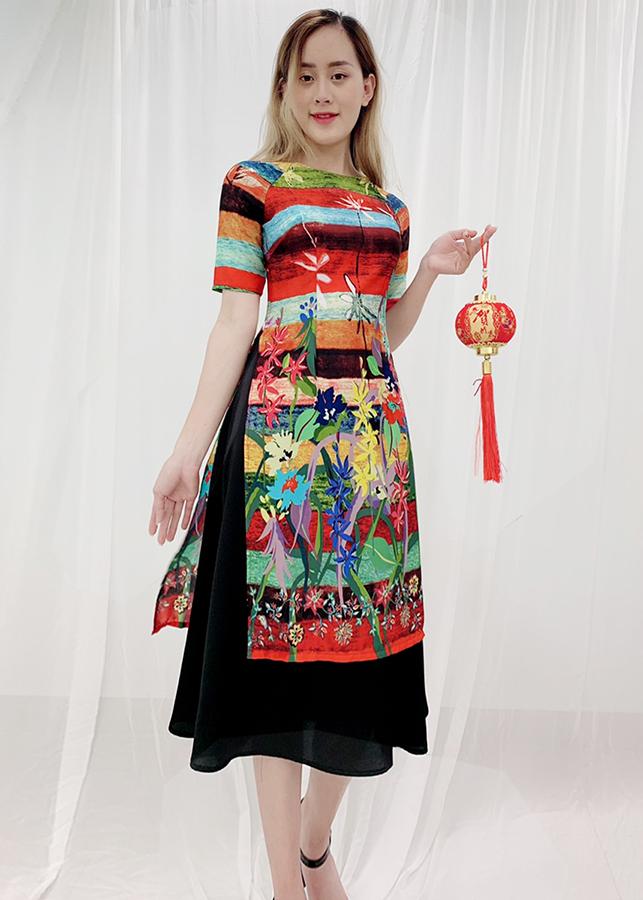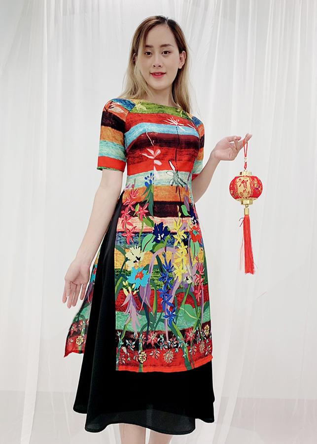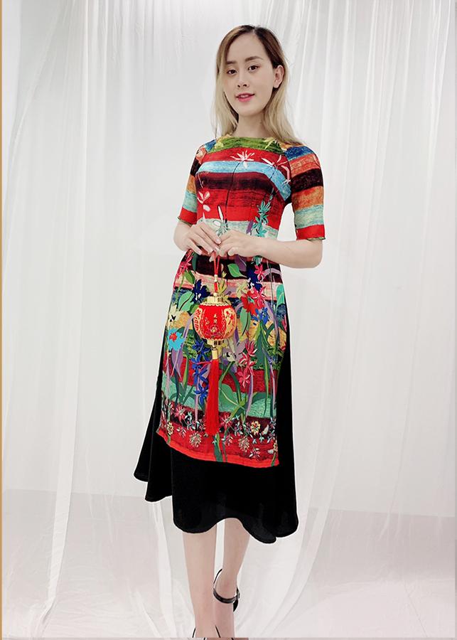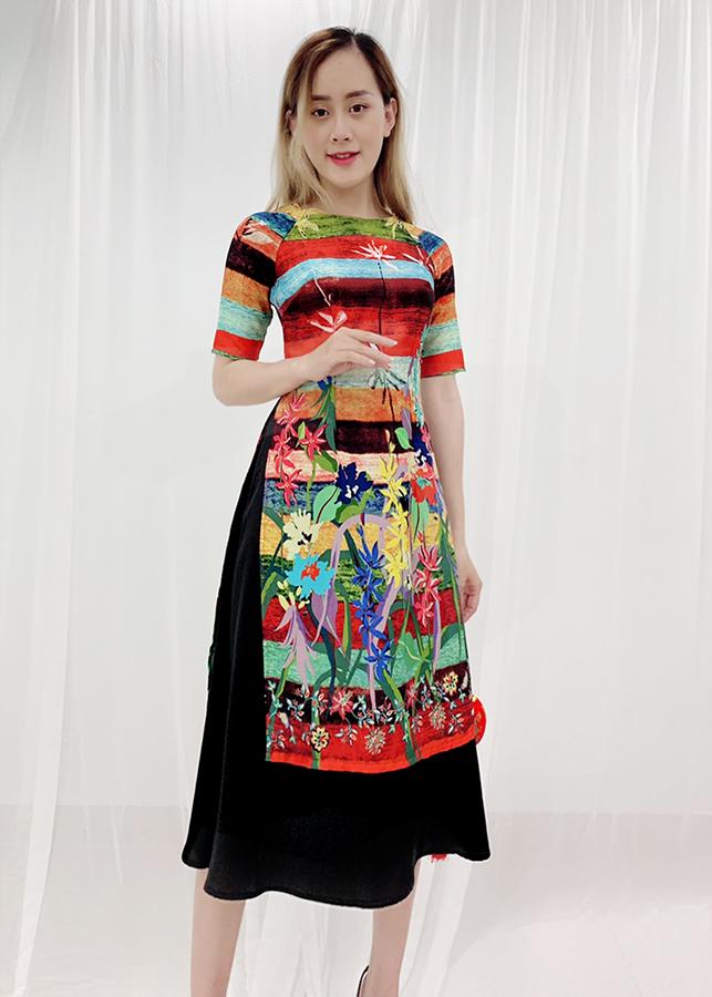 - Áo dài được thiết kế ngang gối rất dễ mặc và tôn dáng, những chị có phần eo hơi tròn 1 chút thì khỏi lo vì áo dài nay thiết kế che bụng rất tinh tế,