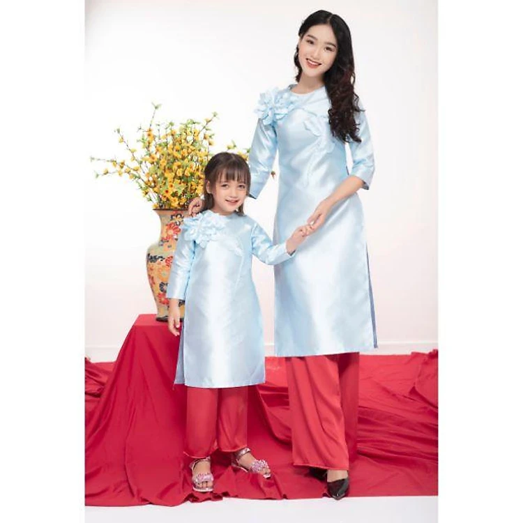 Sét áo dài cách tân mẹ và bé gái xanh nhẹ nhàng Áo dàivcao cấp giá rẻ ảnh thật 100%