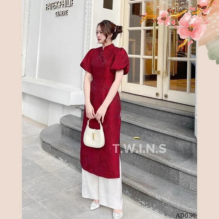 SET ÁO DÀI ĐỎ GẤM + QUẦN SUÔNG Q️