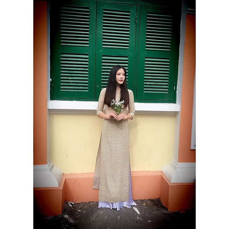 SET ÁO DÀI TRUYỀN THỐNG HOA NHÍ TÍM CHẤT LIỆU TẰM NHẬT CAO CÁP