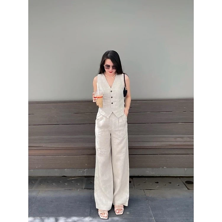 Set áo gile nữ thanh lịch nhẹ nhàng, kèm quần dài form suông rộng rãi thoải mái Bv10