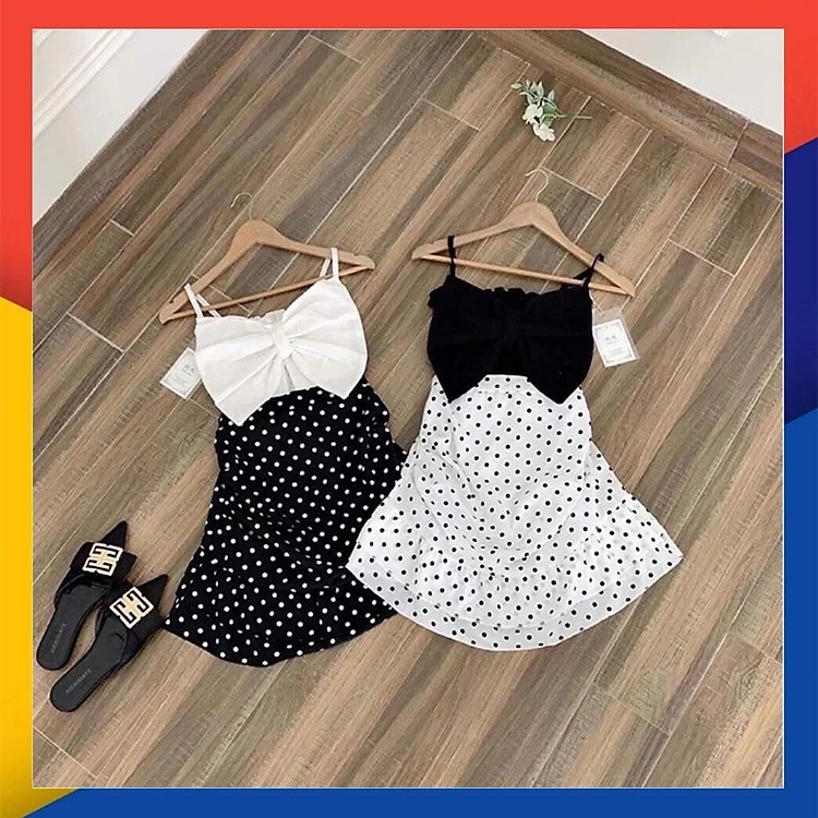 Set áo hai dây chân váy chấm bi Hàn Quốc