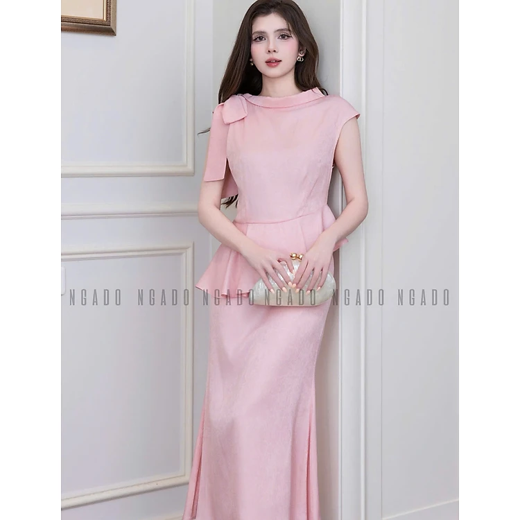 Set áo hồng cột nơ chân váy đuôi cá NGADO , set áo váy midi , set áo váy Nữ , set đồ dự tiệc