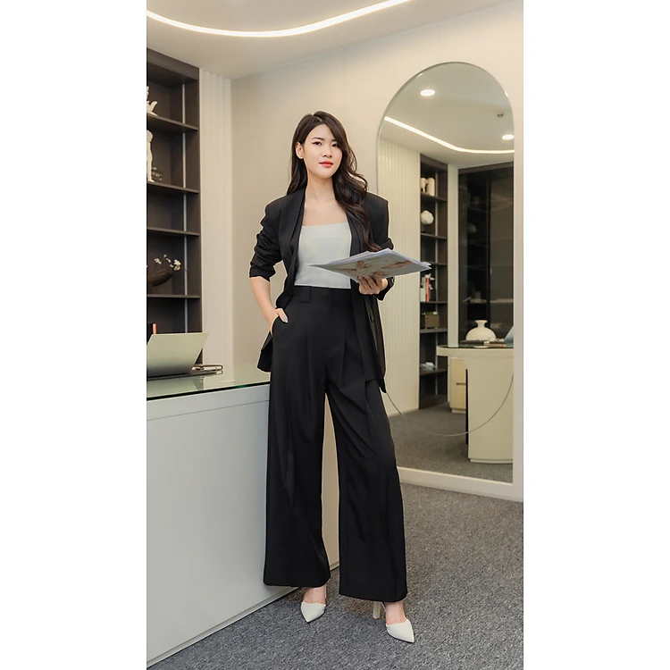 Set áo khoác blazer & quần vải ống xuông ly giữa BRIONA thiết kế cao cấp WHITE CHIC