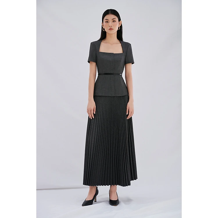 Set áo kiểu tay ngắn cổ thang & chân váy xếp ly DARIA thiết kế cao cấp WHITE CHIC